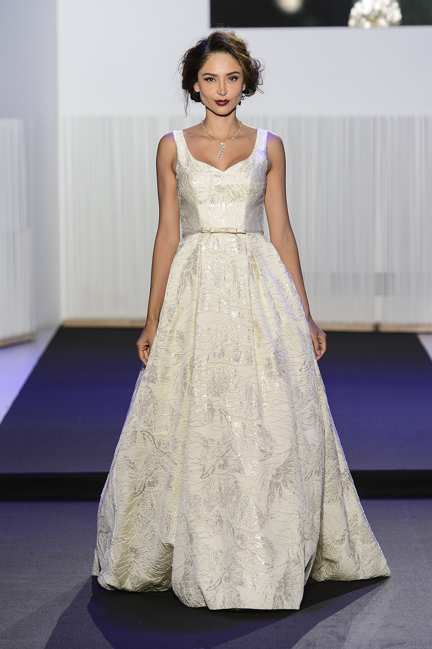 Look 27 - maxi robe en brocart metallise ecru - maxi dress in off-white metallic brocade - Patricia Contreras