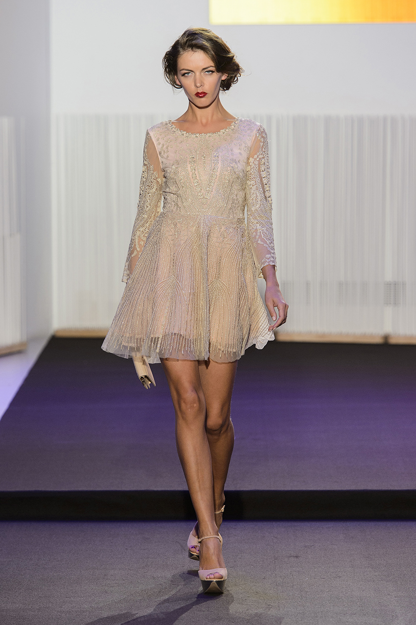 Look 19 - mini robe en tulle champagne rebrodee au fil d’or - mini dress in tulle champagne embroidered with gold thread - Bozena