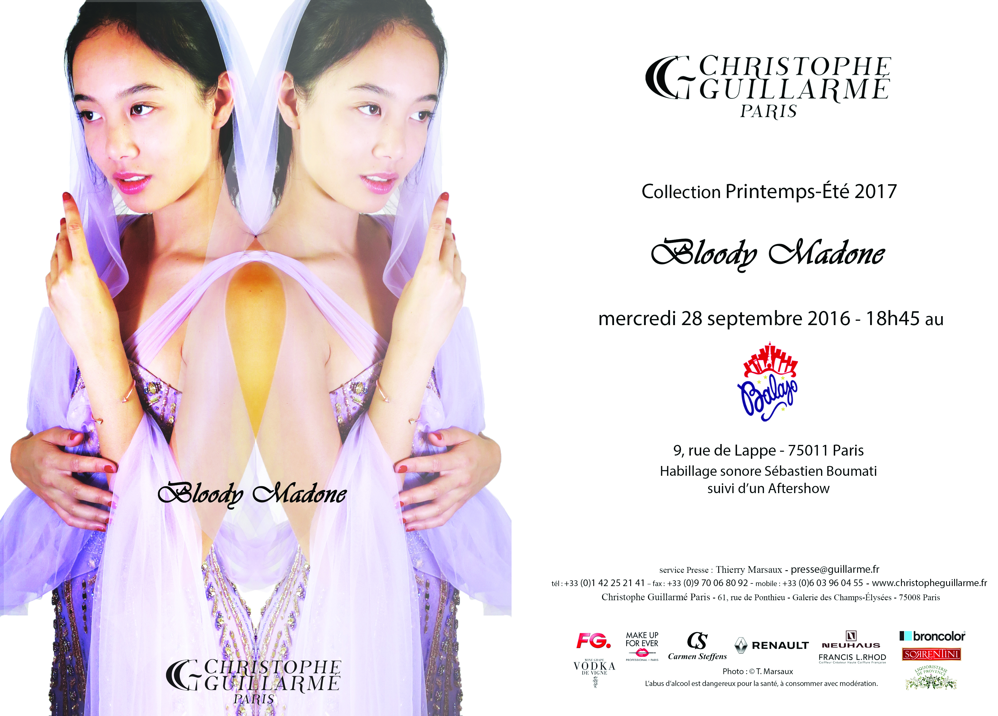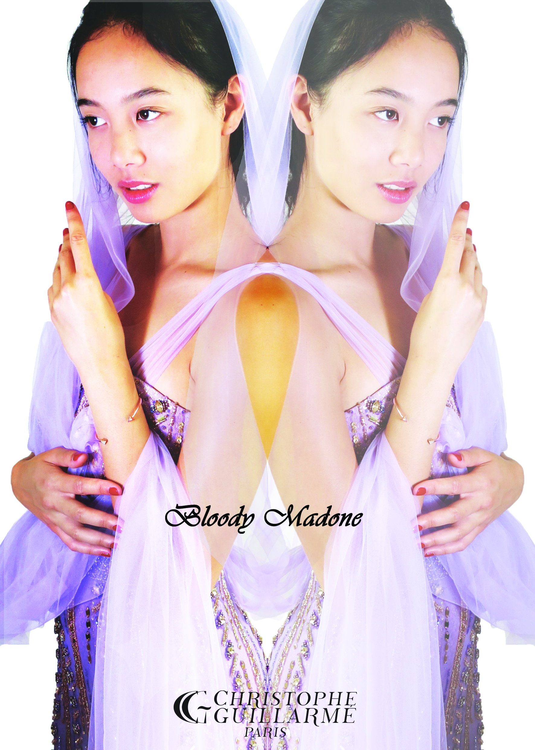 Nouvelle icône divinatoire au regard mêlé de larmes rougis par l’hémoglobine, Bloody Mary apparition occulte est sublimé en égérie contemporaine et sanctifié par Christophe Guillarmé pour l’été 2017 tel un spectre stylé.