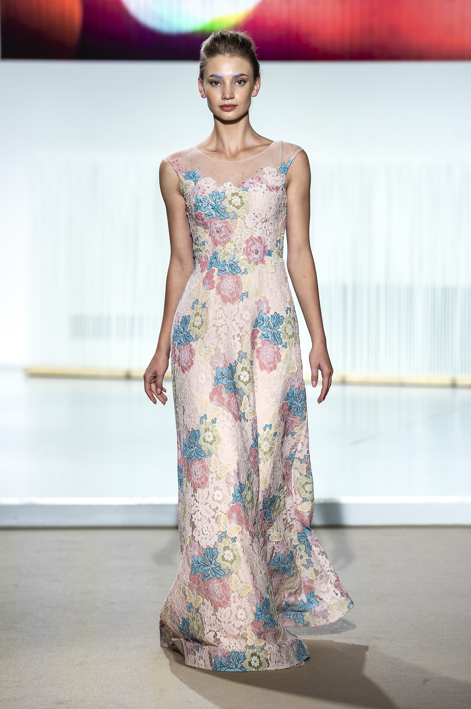 look 13 - longue robe en dentelle multicolore appliquee - long multicolored lace applique gown - Sasha