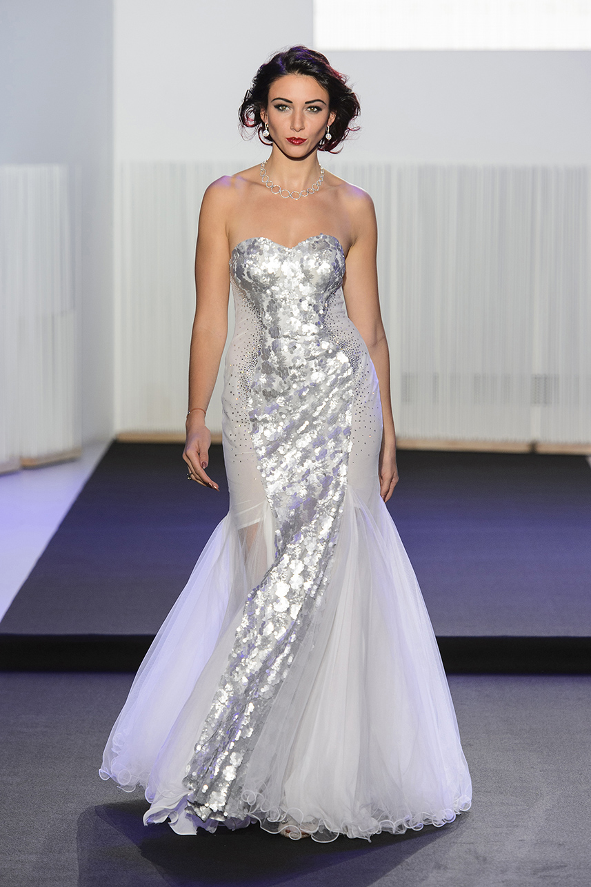 Gold is also everywhere, in see through version or applied with crystals stones. An “Old Hollywood” aesthetics with shapes like mermaid strapless gown or boat neck retro style.