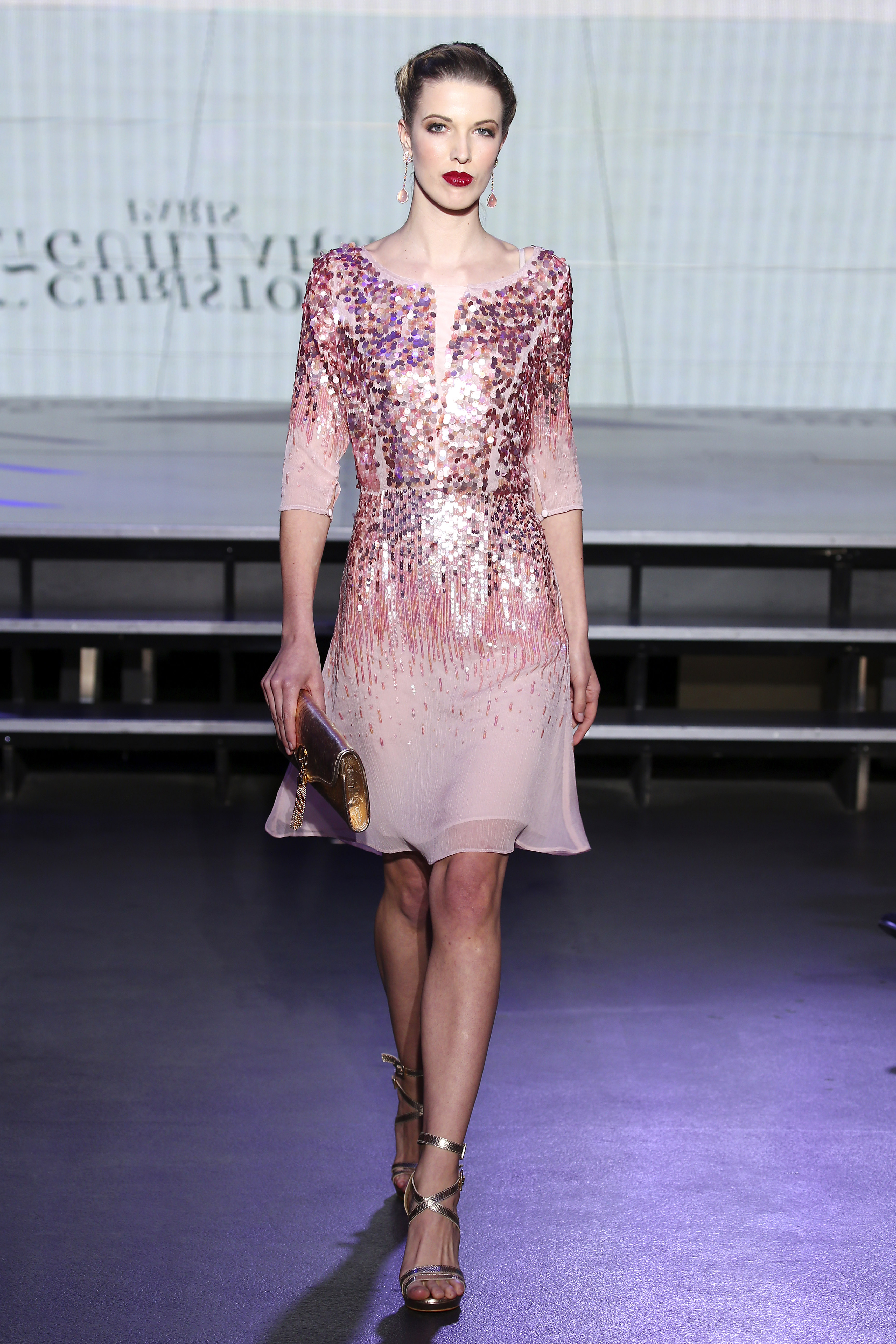 Defile Christophe Guillarme Collection Automne-Hiver 2016-2017 - Psyche - a L Atelier Renault - PFW - Mini robe en mousseline rose poudree pailletee en degrade. Soft pink shaded and sequined chiffon mini dress. Meryl
