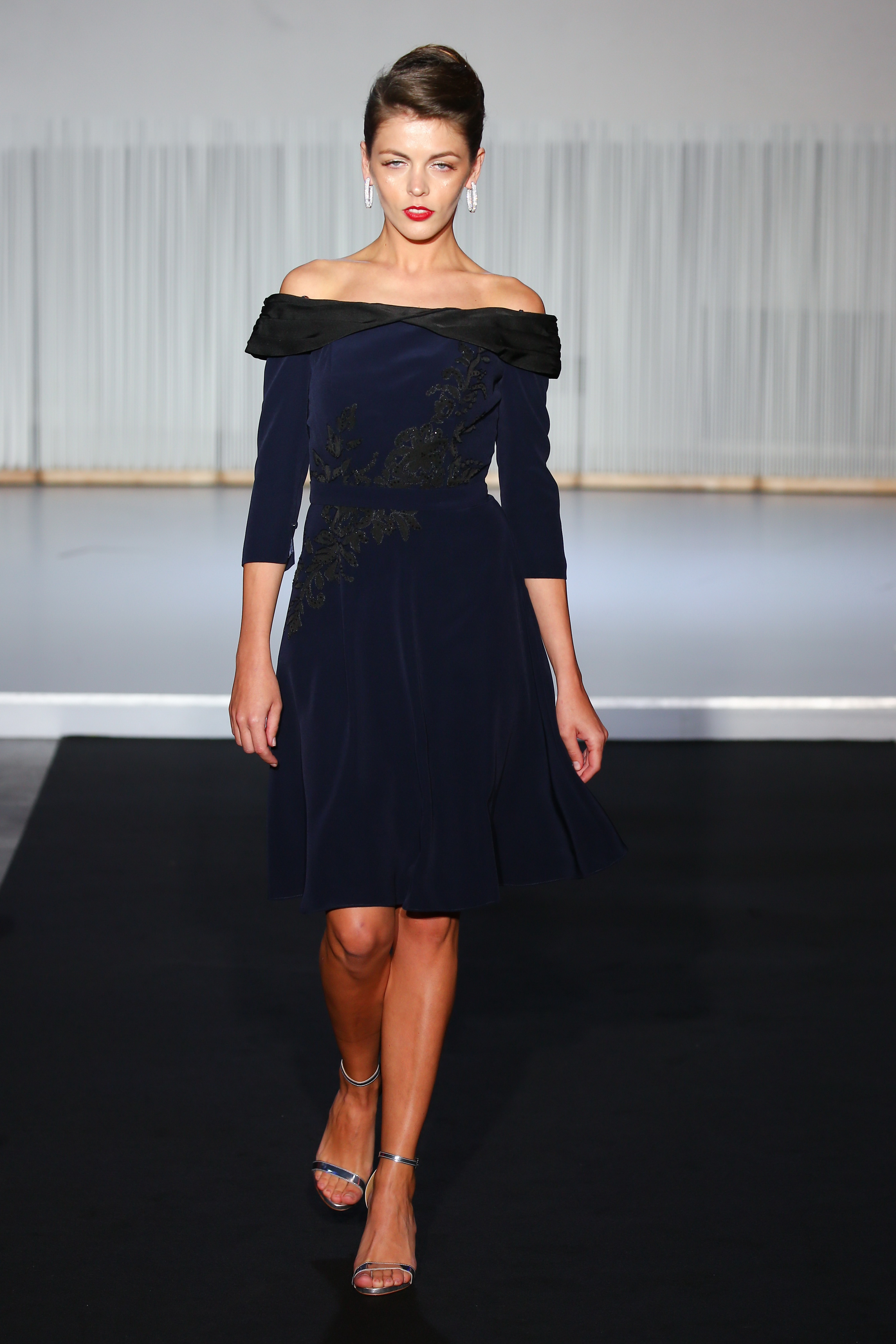 look 3 - mini robe a encolure bateau en crepe de soie bleu marine - navy blue crepe boat neck short dress - Bozena