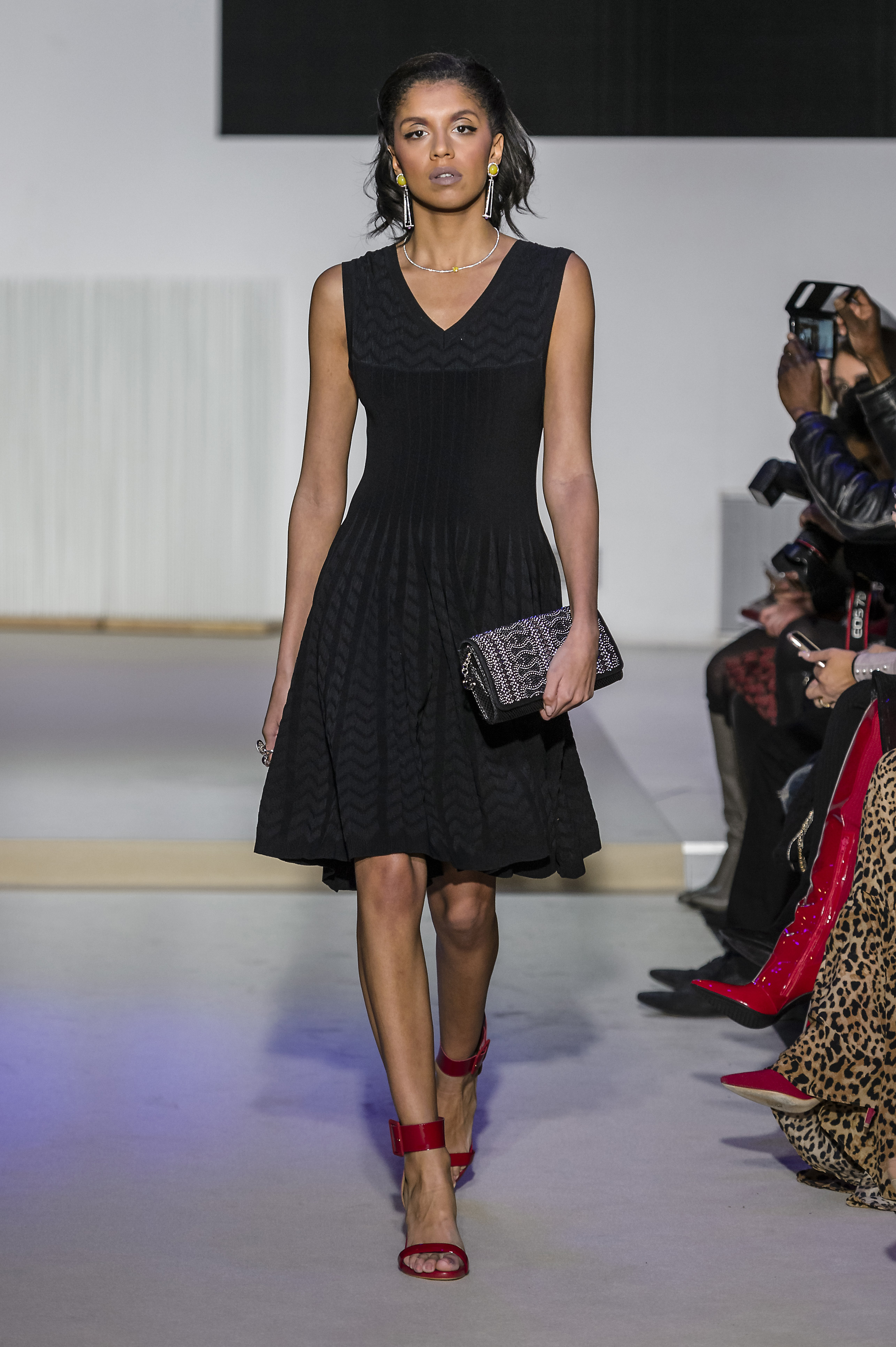 look 4 - robe courte en maille viscose noire a relief short dress in black viscose knitted with relief - Marjorie