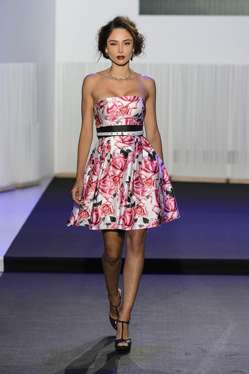 Look 8 - mini robe bustier en faille de soie blanche imprimee de roses - mini strapless dress in white Mikado silk printed of roses - Patricia Contreras